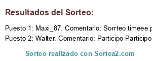 Lista de participantes: Sorteo realizado entre 40 comentarios..