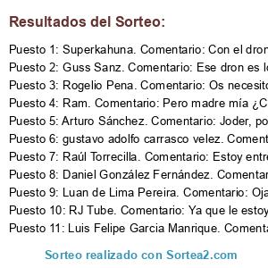 - Suplente 1: Guss Sanz. Comentario: Ese dron es lo que necesito para el nuevo vlog que estoy creando, sería la leche, entre los consejos del canal de willy fox y este dron, sería un gran salto de calidad. 👏🏻👏🏻👏🏻