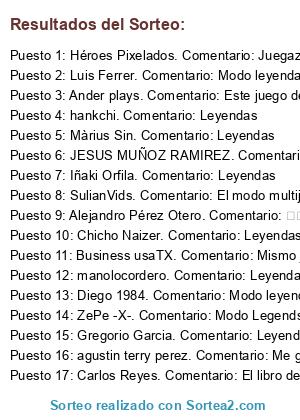 - Ganador 2: Luis Ferrer. Comentario: Modo leyendas es un gran juego