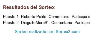Lista de participantes: Sorteo realizado entre 168 comentarios..