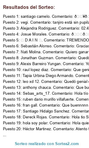 Lista de participantes: Sorteo realizado entre 1583 comentarios..