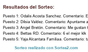 Lista de participantes: Sorteo realizado entre 18 comentarios..