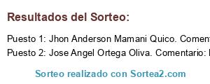 - Ganador 1: Jhon Anderson Mamani Quico. Comentario: :'v solo quiero un aloksito xd