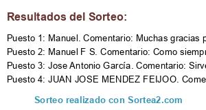 - Ganador: Manuel. Comentario: Muchas gracias por tus videos y consejos, son geniales. Sigue así
