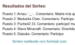Lista de participantes: Sorteo realizado entre 89 comentarios..