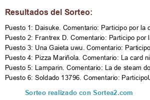 - Ganador 1: Daisuke. Comentario: Participo por la de steam en €