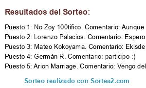 - Ganador 5: Arion Marriage. Comentario: Vengo del futuro y voy a ganar el sorteo así que dame el premio ya. 😂😂