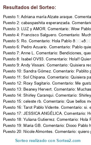 - Ganador 10: Sandra Gómez. Comentario: Pablito puedo participar, muchas gracias y bendiciones para ti y los tuyos 💞🌹