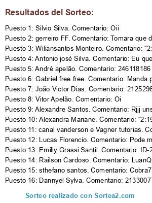Lista de participantes: Sorteo realizado entre 1231 comentarios..