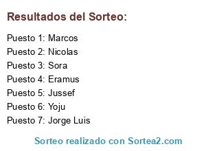 Resultados del sorteo: