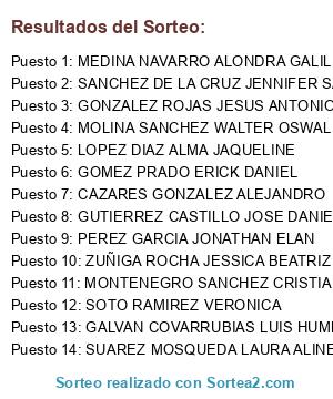 Resultados del sorteo: