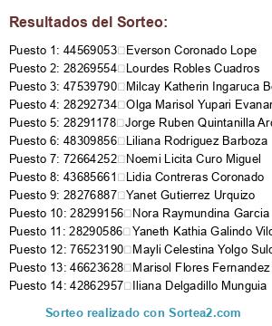 Resultados del sorteo: