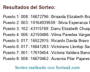 Resultados del sorteo: