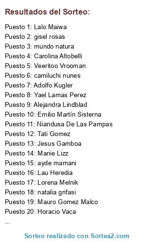 Lista de participantes: silvia alday(2 participaciones), josefina mentesana(2 participaciones), florchu palomino(2 participaciones), EliSs Vidaurre(2 participaciones), giselle maisenti(2 participaciones), mundo natura(2 participaciones), flor nieva(2 participaciones), Tati Gomez(2 participaciones), Veronica Carter(2 participaciones), gabriela moreno(2 participaciones), maryte acuña(2 participaciones), Yael Lamas Perez(2 participaciones), marcela peralta(2 participaciones), camiluchi nunes(2 participaciones), Andrea Menacho(2 participaciones), matias nicolas amor(2 participaciones), ayde mamani(2 participaciones), Melina Bares(2 participaciones), adriana barrionuevo(2 participaciones), Romina Mamani(2 participaciones), silvina luna(2 participaciones), anita saravia(2 participaciones), Adolfo Kugler(2 participaciones), lourdes chaneton(2 participaciones), Lujis Muratore(2 participaciones), lucas carraro(2 participaciones), Maria Del Mar Flores(2 participaciones), natalia grifasi(2 participaciones), exequiel treviño(2 participaciones), vero ferreyra(2 participaciones), Niandusa De Las Pampas(2 participaciones), Agustin Garofali(2 participaciones), virginiA mimi cayo(2 participaciones), Veeritoo Vrooman(2 participaciones), ariel echenique(2 participaciones), eugenio tiburcio(2 participaciones), Lic Gah(2 participaciones), Belencita Abdala Fernandez(2 participaciones), gisel rosas(2 participaciones), el mazter(2 participaciones), francisco pistone(2 participaciones), Gisel Jaime(2 participaciones), marcos gianzanti(2 participaciones), andrea olivera(2 participaciones), Lau Heredia(2 participaciones), Andrea Veronica Miranda(2 participaciones), Atilio Parada Abán(2 participaciones), Felicitas Colina Cornejo(2 participaciones), Alejandra Lindblad(2 participaciones), Mauro Gomez Malco(2 participaciones), Luciana Cassina(2 participaciones), Hector L. Alarcon(2 participaciones), Lalo Maiwa(2 participaciones), Mariela Victoria Terapias Alternativas(2 participaciones), Faby Alejandra Romero(2 participaciones), Eliana Tolaba(2 participaciones), Sofia Nancy Liquitay(2 participaciones), Aylen Rocio Alarcon(2 participaciones), edgar loz(2 participaciones), Lorena Melnik(2 participaciones), norma torrejon(2 participaciones), Natalia Saravia(2 participaciones), Carolina Altobelli(2 participaciones), Gaby David(2 participaciones), Maria Silvia Lamas(2 participaciones), Beatriz Elizabeth Olivera(2 participaciones), Maria Susana Valentini(2 participaciones), Emilio Martín Sisterna(2 participaciones), Alejandro Nicolas Pacheco(2 participaciones), Mariie Lizz(2 participaciones), Carla Daniela Diaz(2 participaciones), Jesus Gamboa(2 participaciones), Römmy VàNn RÖssen(2 participaciones), Vero Miranda(2 participaciones), yanina nogales(2 participaciones), Gabriel Sanchez(2 participaciones), Anto Dallacaminá(2 participaciones), noe burgos(2 participaciones), lau segura(2 participaciones), Marinita Tiburcio(2 participaciones), carolina mogro(2 participaciones), Daniela Emilce(2 participaciones), liliana lopez(2 participaciones), Pao Laz(2 participaciones), carito erazo(2 participaciones), Majo Martinez Ferrer(2 participaciones), Vanesa Morelli(2 participaciones), silvana vargas(2 participaciones), ines finetti(2 participaciones), Sandra Elizabeth Manque(2 participaciones), Horacio Vaca(2 participaciones), Flor Abril Abán(2 participaciones), Javier Moretti(2 participaciones), Maria Belen Villagran(2 participaciones), Rossy Maita(2 participaciones).