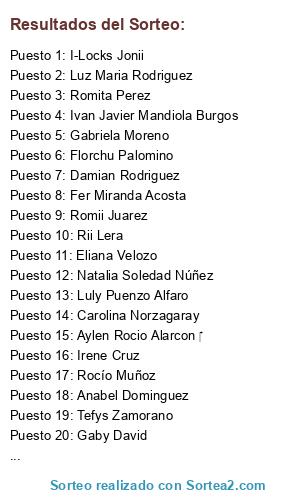Lista de participantes: Micaela Mc(2 participaciones), Markitos Lopez(2 participaciones), Ale Lombardi(2 participaciones), Judith Juarez(2 participaciones), Damian Rodriguez(2 participaciones), Sil Muñoz(2 participaciones), Francisco Pistone(2 participaciones), Ivan Condorcett(2 participaciones), Maxiih Contreras(2 participaciones), Maria Gabriela Aguierre(2 participaciones), Pipi Tobío Costas(2 participaciones), CarLa CasTillo(2 participaciones), Daii Pelayo(2 participaciones), Meli Rubio(2 participaciones), Carmen Lopez(2 participaciones), Nicolás Salom(2 participaciones), Mariela Palomino(2 participaciones), Leandro Sebastian Sisterna(2 participaciones), Mer Narvaez(2 participaciones), Carolina Norzagaray(2 participaciones), Florchu Palomino(2 participaciones), Maria Jose B(2 participaciones), Elegante Avelina(2 participaciones), Nahir Nyel Liques(2 participaciones), I-Locks Jonii(2 participaciones), Belen Gonzalez(2 participaciones), Mónica Neme(2 participaciones), Queña Cosas Muy Ricas(2 participaciones), Carito Mercado Echazu(2 participaciones), Yanina Soledad Luz Ramirez (2 participaciones), Sofia Lajad(2 participaciones), Cristian Lopez(2 participaciones), Ana Laura Varela(2 participaciones), Gisela Garnica(2 participaciones), Vicky Quintero(2 participaciones), Maira Belén Méndez(2 participaciones), Lorenzo Marcos(2 participaciones), Rii Lera(2 participaciones), Romita Perez(2 participaciones), Daniela Constanza Sulca(2 participaciones), Maxi Moreno(2 participaciones), Maximiliano Mura (2 participaciones), Fani Estela Perez(2 participaciones), Claudia Zeballos(2 participaciones), Rocío Muñoz(2 participaciones), Silvana Vargas(2 participaciones), Beluu AP(2 participaciones), Mariana Silvestrini(2 participaciones), Hugo Marcel Díaz (2 participaciones), Rodrigo Cardozo (2 participaciones), Gaabyy Neegriitaa Cja(2 participaciones), Mercedes Coll (2 participaciones), Mauro Rios(2 participaciones), Natalia Saravia(2 participaciones), Luz Maria Rodriguez(2 participaciones), Gym Tonic(2 participaciones), Gaby Guaymas(2 participaciones), Emilio Martín Sisterna(2 participaciones), Jesus Gamboa(2 participaciones), Pao Laz(2 participaciones), Ariel Carr(2 participaciones), Fede Mapex(2 participaciones), Marinita Tiburcio(2 participaciones), Eliana Velozo(2 participaciones), Sandry Romero(2 participaciones), Tefys Zamorano(2 participaciones), Georgina Burgos(2 participaciones), Fernando Pistone(2 participaciones), Jorge Martin Pereyra (2 participaciones), Ana Laura Gradín (2 participaciones), Luu Caldez(2 participaciones), Milagro Choque(2 participaciones), Felicitas Colina Cornejo(2 participaciones), Leo Simesen de Bielke(2 participaciones), Diego Amante(2 participaciones), Alvaro Lf(2 participaciones), Gaby J G. Garcia(2 participaciones), Carla Pérez(2 participaciones), Maria Flores(2 participaciones), Diego Holmes(2 participaciones), Christian Vendler (2 participaciones), Gaby David(2 participaciones), Pamela Miranda Marengo(2 participaciones), Alfon Guida(2 participaciones), Andrea Veronica(2 participaciones), Yael Lamas Perez(2 participaciones), Aguayo Estela (2 participaciones), Josefina Mentesana(2 participaciones), Natalia Soledad Núñez(2 participaciones), Andrea Olivera(2 participaciones), Ivan Javier Mandiola Burgos(2 participaciones), Gabriela Moreno(2 participaciones), Maximiliana Acuña(2 participaciones), Celee Chac Tu Chac(2 participaciones), Maxi Figueroa (2 participaciones), Aye Sagar(2 participaciones), Gab Flores A(2 participaciones), Fer Dorado(2 participaciones), Maru Fabian(2 participaciones), Flor Leon(2 participaciones), Jesy Contreras(2 participaciones), Marcela Barrios(2 participaciones), Maria Eugenia Daher(2 participaciones), Maria Gabriela(2 participaciones), Mariie Lizz(2 participaciones), Pavlo Hanival(2 participaciones), Enzo Alvarez(2 participaciones), Romina Marisol Angelo Ŧ(2 participaciones), Carlos Perez(2 participaciones), Aylen Rocio Alarcon (2 participaciones), Beatriz Elizabeth Olivera(2 participaciones), Hector L. Alarcon(2 participaciones), Dani Sotar(2 participaciones), Anto Dallacaminá(2 participaciones), Ariel Echenique(2 participaciones), Cecilia Aguero(2 participaciones), Ro Fabian(2 participaciones), Nanny Cortez(2 participaciones), Roxana Carolina Cruz Rosell(2 participaciones), Irene Palacios(2 participaciones), Makita Cn(2 participaciones), Facundo Perez(2 participaciones), Daniela Malco(2 participaciones), Lilian Esquivel(2 participaciones), Lacasademiamama Hostel(2 participaciones), Horacio Vaca(2 participaciones), Fernanda Cañari(2 participaciones), Juan Manuel Villegas(2 participaciones), Jesica Gisela Fusetti(2 participaciones), Sandra Elizabeth Manque(2 participaciones), Clau Miraza(2 participaciones), Ariel Flores(2 participaciones), Vanesa Vega(2 participaciones), Betiana Durand (2 participaciones), Ne Miranda(2 participaciones), Carla Filo(2 participaciones), Irene Cruz(2 participaciones), Cristian Gonzalez(2 participaciones), Fer Miranda Acosta(2 participaciones), Romii Juarez(2 participaciones), Gabriela Sarapura(2 participaciones), Luly Puenzo Alfaro(2 participaciones), Fer Herrera(2 participaciones), Natalia Karina Luciano(2 participaciones), Anabel Dominguez(2 participaciones).