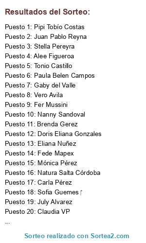 Lista de participantes: Nanny Sandoval(2 participaciones), Flor Abril Abán(2 participaciones), Gon Grifell(2 participaciones), Pat App(2 participaciones), Mimi Davalos(2 participaciones), July Alvarez(2 participaciones), Maria Eugenia Daher(2 participaciones), Josefina Mentesana(2 participaciones), Ines Finetti(2 participaciones), Rocío Muñoz(2 participaciones), Judith Juarez (2 participaciones), Emilce Campos(2 participaciones), Tonio Castillo(2 participaciones), Vero Avila(2 participaciones), Belen Gonzalez (2 participaciones), Paula Belen Campos(2 participaciones), Cristian Gonzalez(2 participaciones), Daniela Malco(2 participaciones), Stella Pereyra(2 participaciones), Natura Salta Córdoba(2 participaciones), Florencia Rojas Llapur(2 participaciones), Mátúté Vásqúéz(2 participaciones), Claudia VP(2 participaciones), Julieta Quipildor(2 participaciones), Mariianiita Tolaba(2 participaciones), Alfredo Axama(2 participaciones), Ana Inés Soruco Wynne(2 participaciones), Gaabyy Neegriitaa Cja(2 participaciones), Mariela Palomino(2 participaciones), Majo Anselmino(2 participaciones), Maria Eugenia Estrella(2 participaciones), Emilio Martín Sisterna(2 participaciones), Alee Figueroa(2 participaciones), Mariel Delgado(2 participaciones), Lucesita Mg(2 participaciones), Juan Pablo Reyna(2 participaciones), Sol Castiella(2 participaciones), Andrea Veronica(2 participaciones), Fede Mapex(2 participaciones), Franco Livelli(2 participaciones), Andrea Melisa Andru(2 participaciones), Diego Holmes(2 participaciones), Ángelez Lo(2 participaciones), Aguayo Estela(2 participaciones), Valeria Principato(2 participaciones), Amparo Garcia(2 participaciones), Vanesa Vega(2 participaciones), Barbara Barrios(2 participaciones), Patricio Bracamonte(2 participaciones), Natalia Soledad Núñez(2 participaciones), Stella Sardina(2 participaciones), Brenda Gerez(2 participaciones), Agustin Polemann (2 participaciones), Elias Ignacio Zerpa(2 participaciones), Gaby del Valle(2 participaciones), Natalia Saravia(2 participaciones), Fer Mussini(2 participaciones), Laura Zarzoso Monte(2 participaciones), Valeria Guerrero(2 participaciones), Gabriel Gordillo(2 participaciones), Andrea Olivera(2 participaciones), Maria Jose B(2 participaciones), Cyntia Fernández (2 participaciones), Caro Trejo(2 participaciones), Cristian Lopez(2 participaciones), Edith Apaza(2 participaciones), Matías Nicolás(2 participaciones), Maira Belén Méndez(2 participaciones), Ana Elena Brito(2 participaciones), Luu Caldez(2 participaciones), Maria Gabriela(2 participaciones), Sandry Romero(2 participaciones), Florencia Molino(2 participaciones), Anto Dallacaminá(2 participaciones), Danny Sarger Master Cso(2 participaciones), Carla Pérez(2 participaciones), Mónica Pérez(2 participaciones), Eliana Nuñez(2 participaciones), Celee Chac Tu Chac(2 participaciones), Eugenia Rojas Ranea(2 participaciones), Jess Reynaga(2 participaciones), Norma Torrejon(2 participaciones), Luciano Livelli(2 participaciones), Maria Belen Villagran(2 participaciones), Yael Lamas Perez(2 participaciones), Eugenio Tiburcio(2 participaciones), Rodrigo Zalazar(2 participaciones), Maria Elena Figueroa(2 participaciones), Elegante Avelina(2 participaciones), Doris Eliana Gonzales(2 participaciones), Maria Rua(2 participaciones), Sofia Guemes (2 participaciones), Clau Miraza(2 participaciones), Daii Pelayo(2 participaciones), Cami Figueroa(2 participaciones), Pipi Tobío Costas(2 participaciones), Maria Eugenia Montoya (2 participaciones).