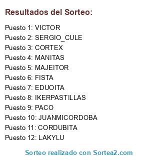 Lista de participantes: PACO, JUANMICORDOBA, EDUOITA, MANITAS, FISTA, LAKYLU, IKERPASTILLAS, CORTEX, SERGIO_CULE, VICTOR, MAJEITOR, CORDUBITA.