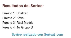Lista de participantes: Real Madrid, Shaktar, Betis, 1o Grupo D.