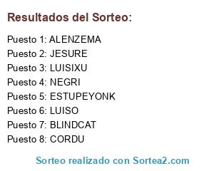 Lista de participantes: LUISIXU, ESTUPEYONK, NEGRI, ALENZEMA, BLINDCAT, JESURE, CORDU, LUISO.