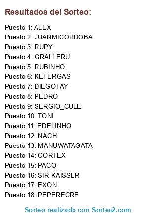 Lista de participantes: PACO, TONI, ECUA, NACH, EDEL, DIEGOFAY, CORTEX, ADRI, JUANMI, FISTA, RUBEN, CORDU, SERGIO_CULE, RUBINHO, PEPE, SITO, LAKYLU, EXON.