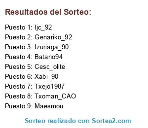 Lista de participantes: Txoman_CAO, Xabi_90, Maesmou, Ijc_92, Izuriaga_90, Cesc_olite, Genariko_92, Batano94, Txejo1987.