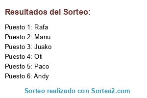 Lista de participantes: Manu, Andy, Rafa, Juako, Paco, Oti.