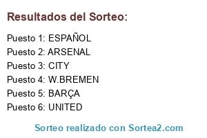 Lista de participantes: ARSENAL, UNITED, CITY, BARÇA, ESPAÑOL, W.BREMEN.