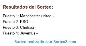 Lista de participantes: Barcelona , Real madrid, PSG, Juventus , Liberpol , Manchester City , Chelsea, Bayer Munich , Manchester united , Ac Milan , Atlético Madrid , Galatasaray.