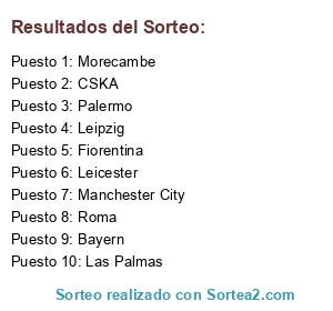 Lista de participantes: Fiorentina, Morecambe, Manchester City, Leipzig, Bayern, Roma, Leicester, Las Palmas, CSKA, Palermo.