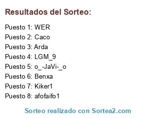 Lista de participantes: o_-JaVi-_o, LGM_9, Kiker1, afofaifo1, Caco, Benxa, Arda, WER.