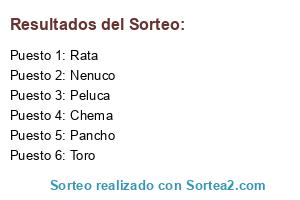 Lista de participantes: Peluca, Pancho, Chema, Nenuco, Rata, Toro.