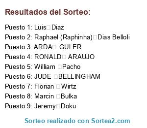 Resultados del sorteo: