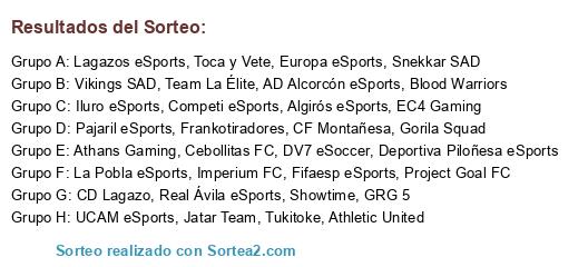 Lista de participantes: AD Alcorcón eSports, Athans Gaming, Lagazos eSports, Jatar Team, UCAM eSports, Gorila Squad, GRG 5, Fifaesp eSports, Team La Élite, Snekkar SAD, Cebollitas FC, Project Goal FC, Pajaril eSports, Athletic United, Showtime, CF Montañesa, CD Lagazo, Algirós eSports, La Pobla eSports, Toca y Vete, Vikings SAD, Blood Warriors, Deportiva Piloñesa eSports, Europa eSports, Competi eSports, Frankotiradores, DV7 eSoccer, EC4 Gaming, Tukitoke, Iluro eSports, Real Ávila eSports, Imperium FC.