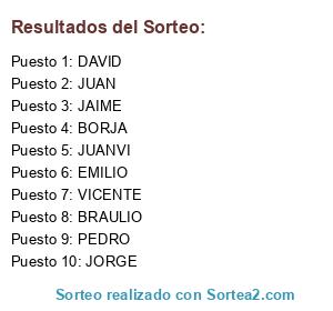 Lista de participantes: BORJA, BRAULIO, DAVID, EMILIO, JAIME, JUAN, JUANVI, VICENTE, PEDRO, JORGE.