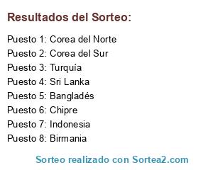 Lista de participantes: Birmania, Chipre, Corea del Norte, Turquía, Corea del Sur, Sri Lanka, Bangladés, Indonesia.