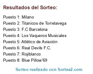 Lista de participantes: Los Vaqueros Musicales, Milano, Titanicos de Torrelavega, F.C Barcelona, Rojiblanco, Real Devils F.C., Blue Pillow'69, Atlético de Aviación.