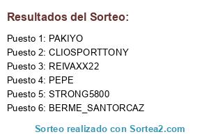 Lista de participantes: REIVAXX22, PAKIYO, STRONG5800, BERME_SANTORCAZ, CLIOSPORTTONY, PEPE.
