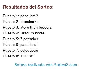 Lista de participantes: Dracum nocte, More than feeders, soloqueue, 7 pecados, TJFTW, Ironsharks, paselibre1, paselibre2.