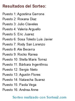 Resultados del sorteo: