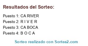Lista de participantes: R I V E R, B O C A, CA RIVER, CA BOCA.