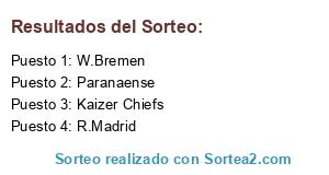 Lista de participantes: Kaizer Chiefs, W.Bremen, R.Madrid, Paranaense.