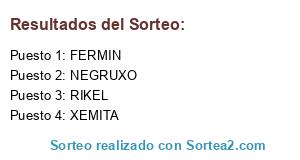Lista de participantes: FERMIN, NEGRUXO, RIKEL, XEMITA.