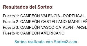 Lista de participantes: CAMPEÓN VALENCIA - PORTUGAL, CAMPEÓN VASCO-CATALÁN - ARGENTINA, CAMPEÓN AMERICANO, CAMPEÓN CASTELLANO-MADRILEÑA.