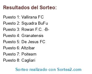 Lista de participantes: Altzibar, Cagliari, Squadra BuFu, De Jesus FC, Rowan F.C. -B-, Granatensis, Poiteam, Vallirana FC.