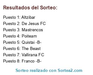 Lista de participantes: Poiteam, De Jesus FC, Quistai -B-, The Beast, Franco -B-, Mastrencos, Vallirana FC, Altzibar.