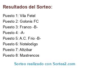 Lista de participantes: Notelodigo, Golonis FC, A.C. Frio -B-, Franco -B-, Mastrencos, -A-, Altzibar, Vila Fetel.