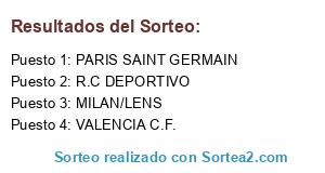 Lista de participantes: R.C DEPORTIVO, MILAN/LENS, VALENCIA C.F., PARIS SAINT GERMAIN.