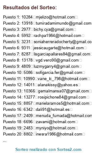 - Puesto 8: 13178 vgd.vero90@gmail.com