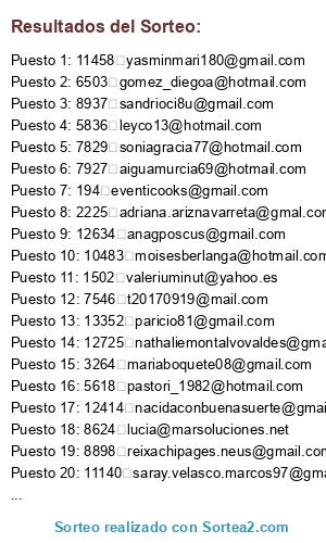 Este sorteo ha sido certificado por Sortea2. Sortea2 garantiza que: