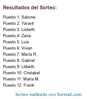 Lista de participantes: Vivian, Zaira, Frank, Yaravit, Luis, Gabriel, María R., María M., Lilibeth, Salome, Cristabel, Lisbeth.